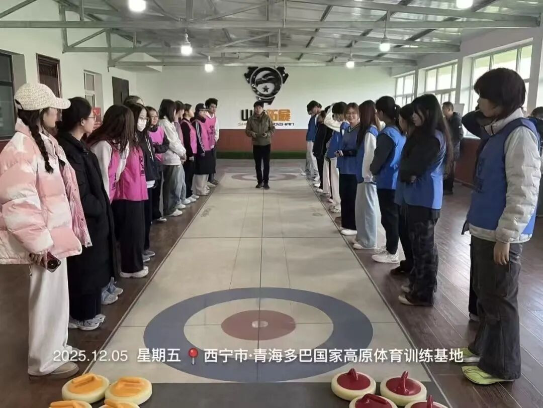 恰逢2025-2026年赛季中国冰壶联赛在基地举办,同学们获得了宝贵的观赛机会。观赛结束后,在基地教练的专业指导下,同学们亲身参与了旱地冰壶体验,在战术布局和团队配合中感受冰壶运动的魅力,进一步深化了对"精准协作"的理解。此外,基地老师还为同学们进行了冰球发展史和青海省非遗工艺的专题分享,同学们不仅了解到这项运动背后的拼搏历程与团队精神,更感受到了传统工艺中"精益求精"的匠心精神。