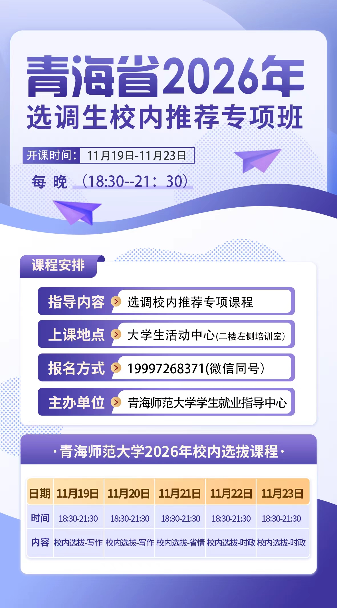 青海省2026年选调生校内推荐专项班(11月19日-11月23日)